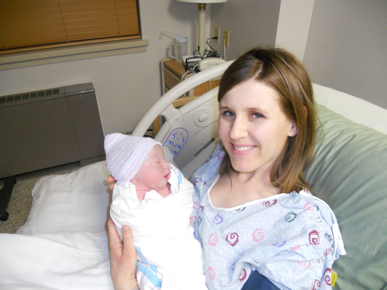 Being cozy at Grandma's house. Wearing the cute little hat they gave her in the hospital. I even caught a happy little smile. You know it's bubbles, but who cares, it's still cute.